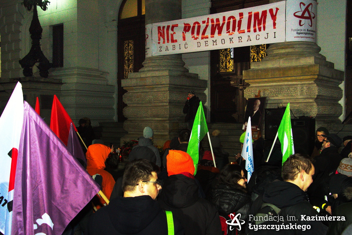 2016-12-16 Demonstracja pod Zachętą przeciwko mowie nienawiści, w 94. rocznicę zamachu na prezydenta Gabriela Narutowicza