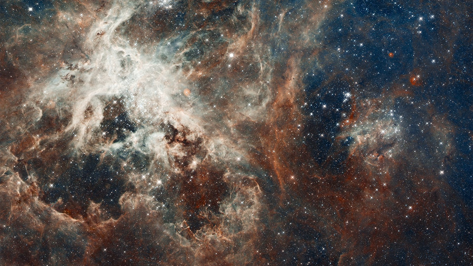 Tarantula Nebula (30 Dor, NGC 2070) in the large Magellanic Cloud, Hubble Space Telescope